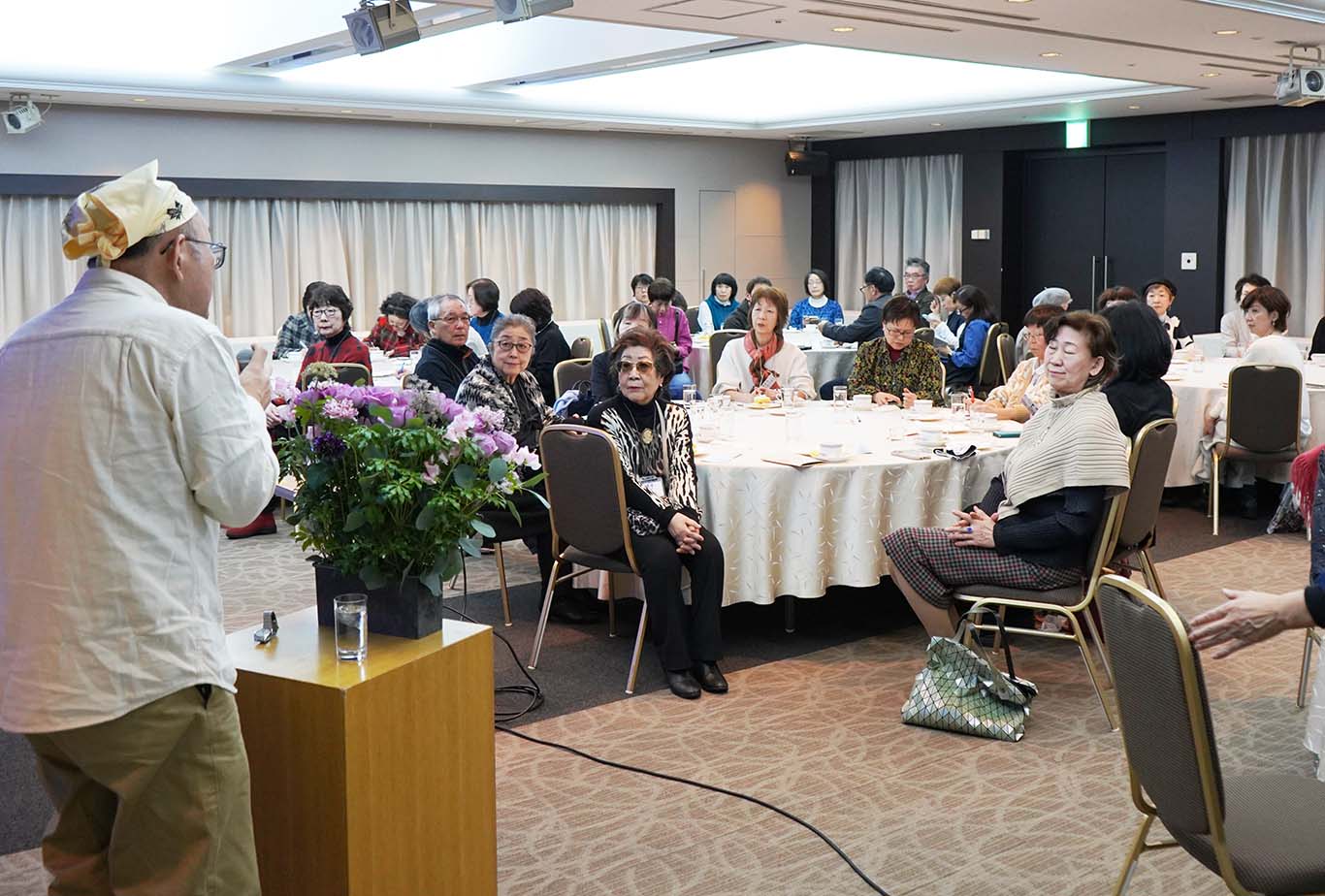 2月12日 (木)ホテルポールスター札幌にてブレインズの交流会とランチ会が行われました。・開会の挨拶、交流会の説明、花友への寄せ書き説明。・第1部:金子明人先生のクレマチス講演会。質問会。・第2部:梅木、本の紹介/内倉、恵庭花の街づくりクラウドファンディングの結果説明/コテージガーデン三石くんの、3月末の福岡フラワーショー出展について。・第3部:内倉、梅木のトークショー。 オープンガーデンガーデナーさんの紹介。初参加者のみなさんから一言ずつ。 金子先生のお土産争奪じゃんけん大会。ブリッタさんのアレンジフラワー争奪戦 記念写真撮影