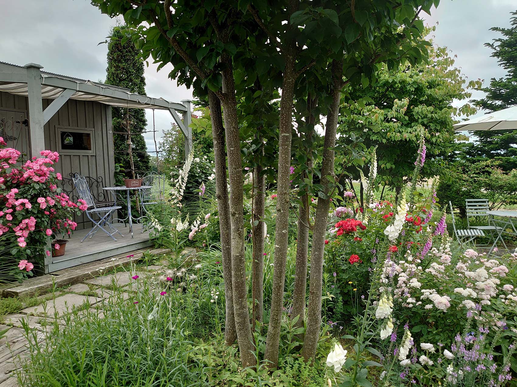 江部乙地区の丘陵地にあり、郷土出身の日本画家「岩橋英遠」の描いた山並みや田畑が望め四季を通して癒される庭です。