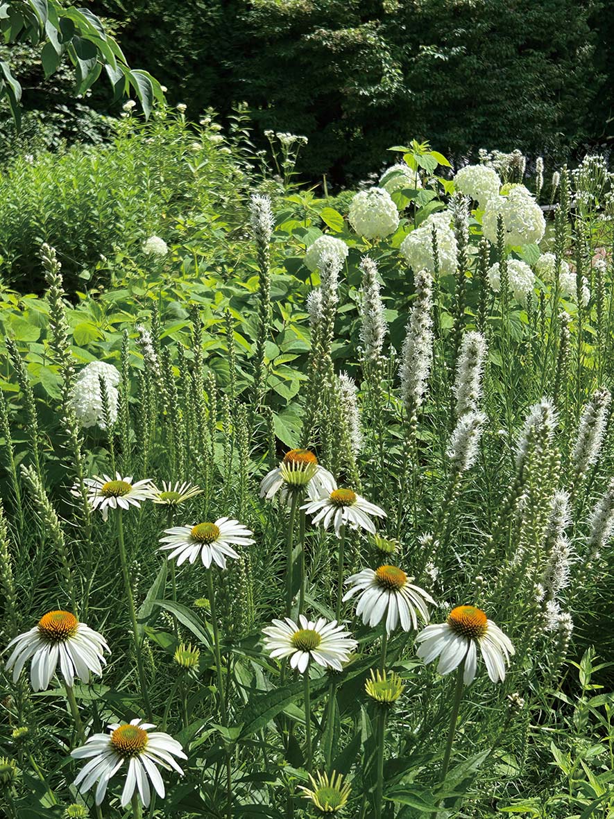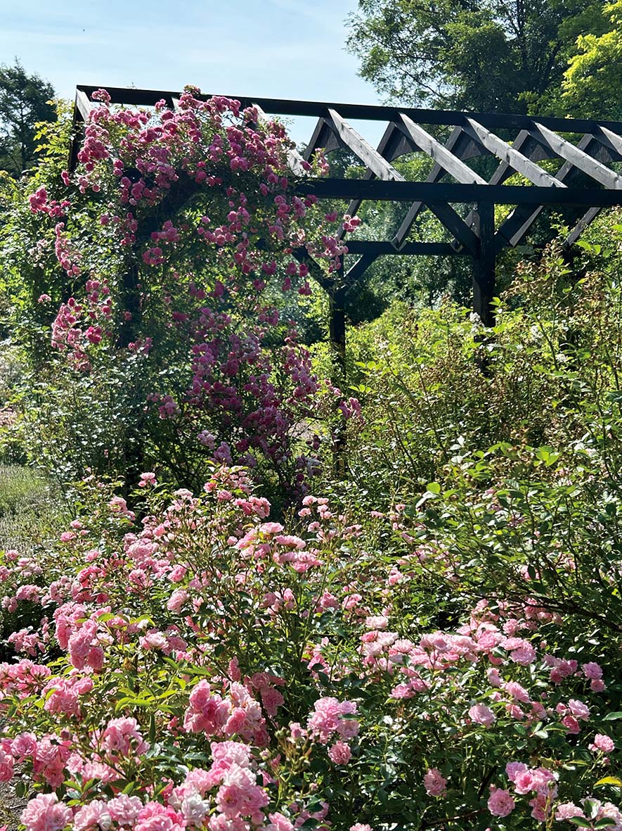 「過ごす庭」をテーマに、経験豊かなガーデナーが手をかけ、季節ごとに宿根草やバラが深い緑の中で美しく咲き継ぎます。
